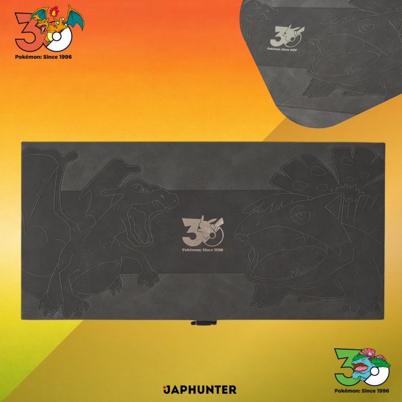 Pokémon 30th Anniversary collector set, Pokémon Kanto starters display, Bulbasaur Charmander Squirtle collectible, Pokémon premium display case, Pokémon crystal orb, Pokémon anniversary merchandise Switzerland, Japhunter.ch Pokémon collectibles