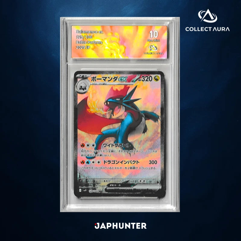 Salamence ex 124/100, Battle Printers Salamence, Salamence ex Japanese, CollectAura graded Pokémon, Salamence Gem Mint 10, Japanese ex Pokémon 2025, CollectAura Salamence ex, JAPHUNTER Pokémon cards, Salamence ex holo, Dragon-type Pokémon ex Japan, CollectAura slab Salamence, Pokémon ex graded 10, Salamence ex Full Art, rare Salamence 2025 JP, Japanese Pokémon ex card